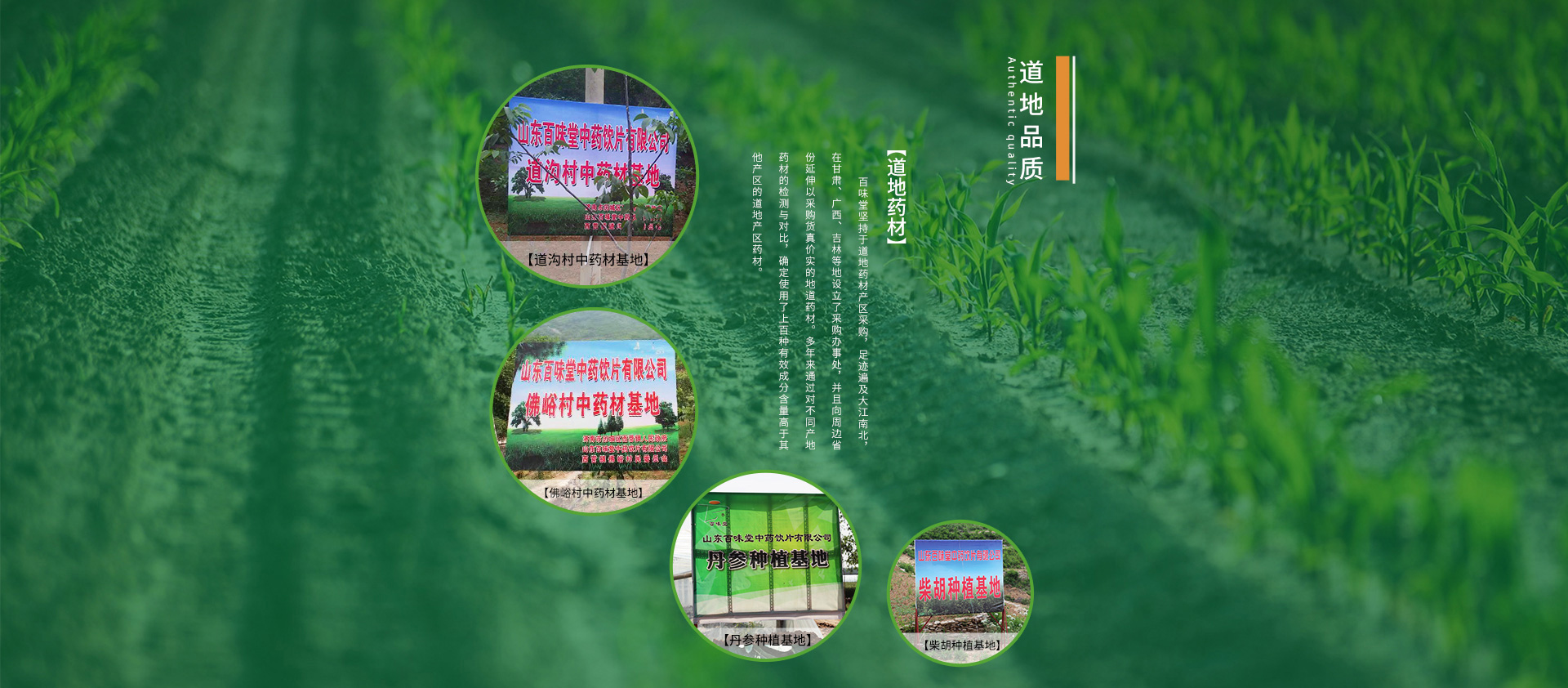 山東百味堂中藥飲片有限公司成立于2003年,是一家集中藥材種植、加工、中藥飲片生產(chǎn)、研發(fā)、銷售于一體的新型中藥生產(chǎn)企業(yè),是百年中藥老字號(hào)“同盛公”的傳承人。公司北臨千里黃河,南望秀美華山,風(fēng)景優(yōu)美、水土宜人。公司廠區(qū)建筑面積兩萬(wàn)平米,擁有一般飲片、小包裝飲片、直接口服飲片、發(fā)酵、發(fā)芽、毒性中藥飲片和藥食同源生產(chǎn)七條生產(chǎn)線。公司致力于中藥材的精耕細(xì)作與中藥飲片的廣泛開發(fā),已先后建立了多個(gè)藥材種植基地和藥材原產(chǎn)區(qū)供應(yīng)基地。